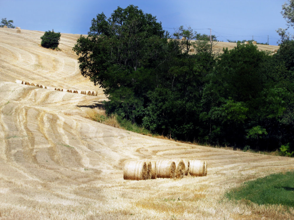 Grands domaines et bordes se répartissaient sur le territoire, au plus près des lieux de production. Autour de la demeure du propriétaire se groupaient des bâtisses formant ainsi un hameau. Certaines fermes massives ont parfois pris des allures de châteaux, quand d’autres sont restées plus modestes. Elles peuvent êtres cernées de bouquets d’arbres d’ornement ou de bosquets, parfois flanquées de leurs pigeonniers. Associés aux corps de ferme, les silos et hangars imposent leur silhouette plus ou moins massive. Ils peuvent être aussi isolés et d’autant marquants dans le paysage.